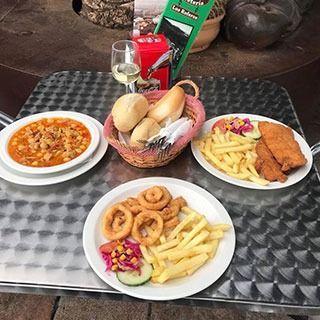 Contamos con una amplia variedad de platos, entre los que se encuentran hamburguesas, bocadillos, perritos, paella, platos combinados, tapas, carne de cabra y nuestras famosas ‘papas arrugás’ (muy canarias).